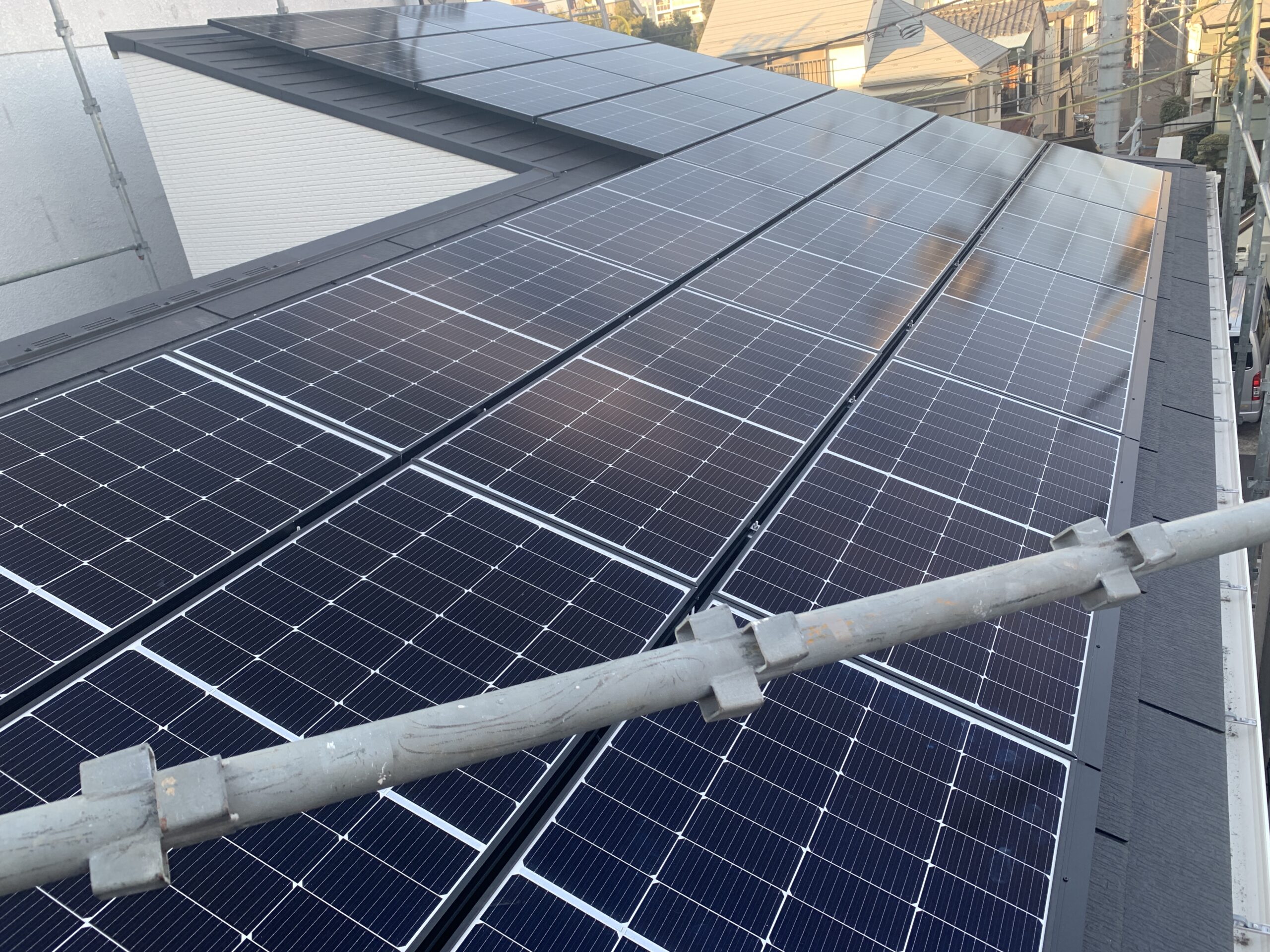 東京都三鷹市にてPanasonic太陽光発電工事を行いました。足場が心許なくハラハラしながらの荷揚げでしたが、無事に完工致しました。